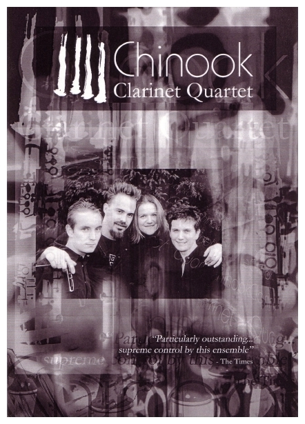 Chinook Clarinet Quartet has performed throughout Britain for more than 17 years. Their dynamic and innovative performances delight audiences by offering flexible and varied programmes. Their vast repertoire extends from arrangements of famous classical works to various jazz styles and contemporary music featuring many of their own commissions.